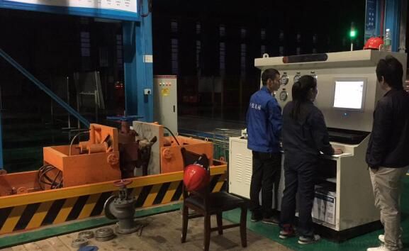 調(diào)整水源電接點(diǎn)壓力表,水泵開關(guān)<低壓水泵>開,先把被試閥門內(nèi)部水注滿,低水壓力表為O 5MPa內(nèi)水已滿,關(guān)掉水泵開關(guān)<低壓水泵>關(guān)。再按<高壓水泵開>調(diào)節(jié)供水泵壓力調(diào)節(jié)閥,<供水泵,液壓系統(tǒng)減壓閥J一25B>把液體試壓壓力達(dá)到和被試閥門密封壓力及電接點(diǎn)壓力表值相同時,高壓水泵就自動停機(jī),關(guān)閉 <;總水開關(guān)>。保壓數(shù)分鐘后,水壓表無下降,測試密封完畢,開<泄壓開關(guān) >,將被試閥門內(nèi)的壓力泄壓,<水壓表>為零,可以放松被試閥門或同時繼續(xù)進(jìn)行強(qiáng)度測試。